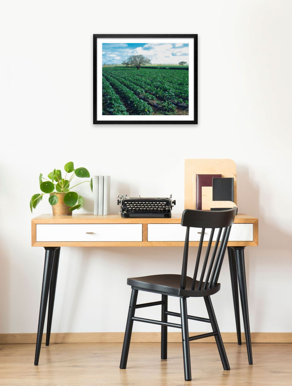 Field with greenhouse photo print quantity